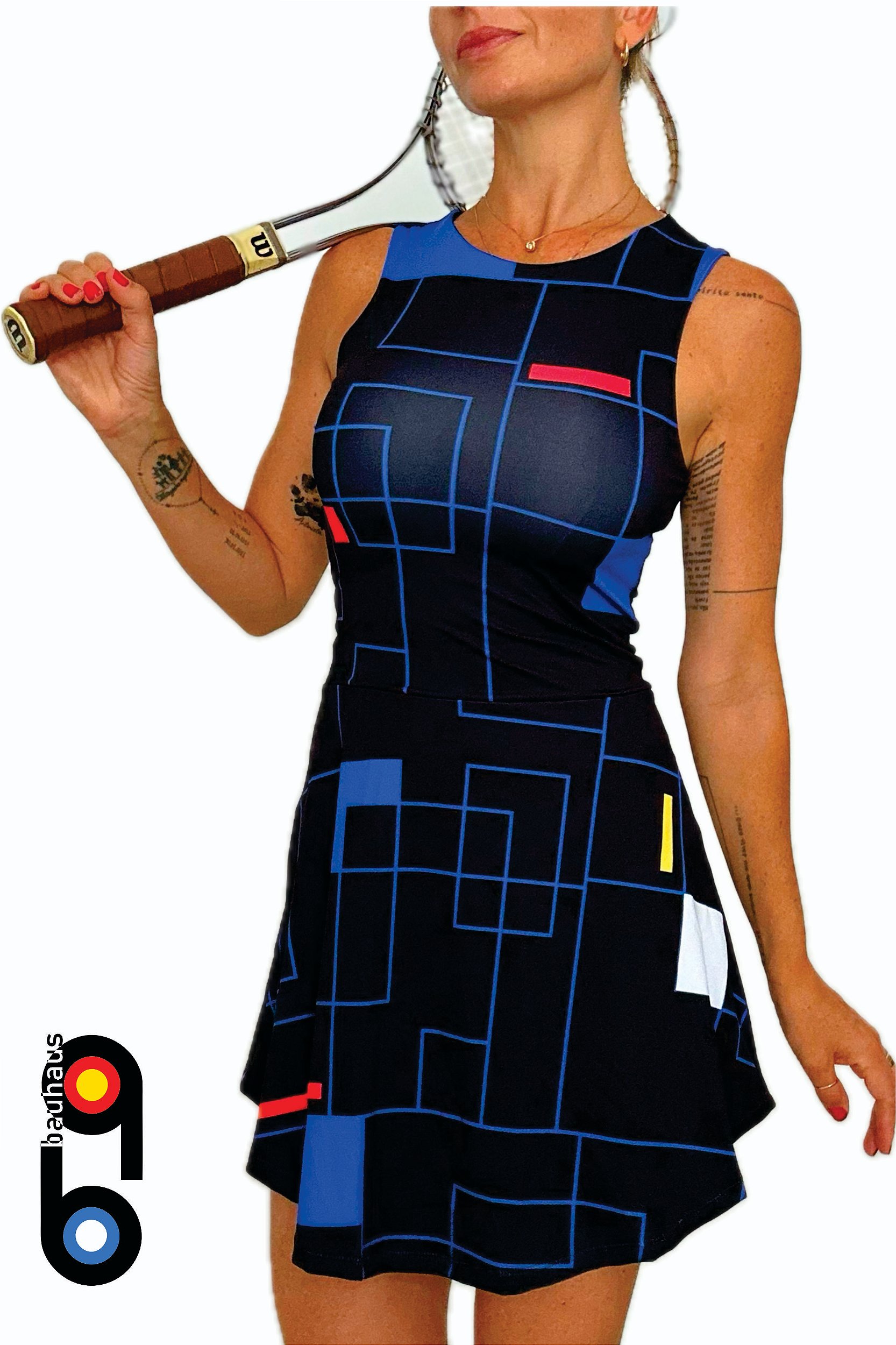 Vestido esportivo, possui a parte superior mais certinha no corpo, com duplo tecido na frente e nas costas, saia rodada, bem soltinha, deixando o movimento solto na hora da batida!!