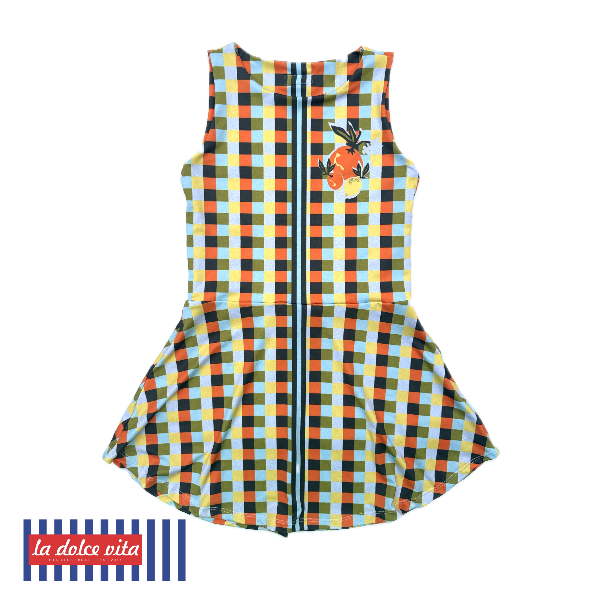 Vestido esportivo, possui a parte superior mais certinha no corpo, com duplo tecido na frente e nas costas, saia rodada, bem soltinha, deixando o movimento solto na hora da batida!!