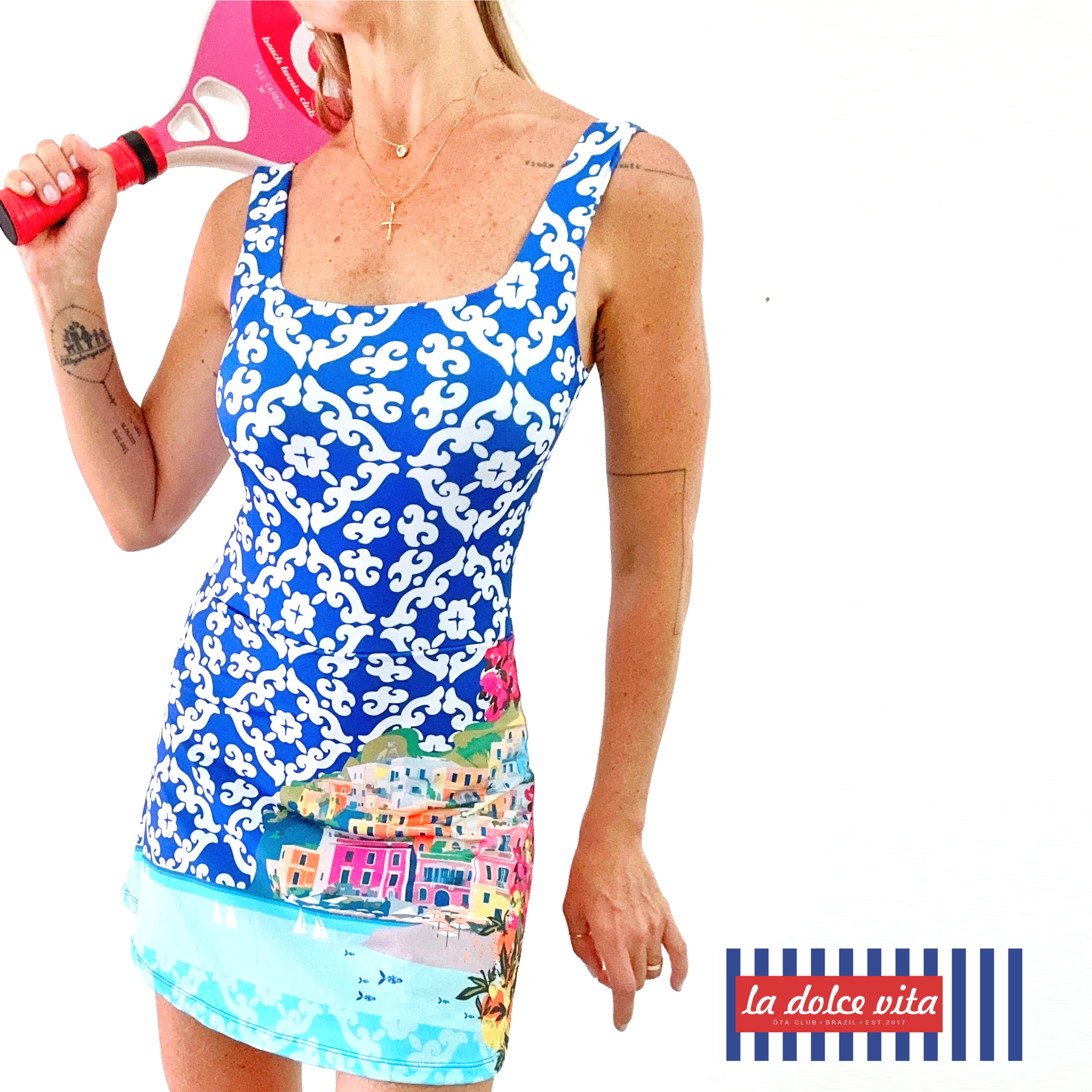 Vestido esportivo possui modelagem elegante, levemente justa na parte superior COM TECIDO DUPLO, SAIA modelo evasÊ COM SHORT EMBUTIDO. EXTREMAMENTE CONFORTÁVEL para a prática esportiva!